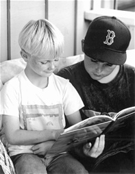Statement (B), "The boys are reading," best describes what you see in the picture. Therefore, you